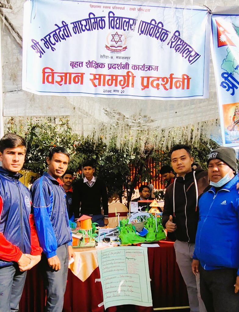 हेटौंडा उपमहानगरपालिका वडा नम्बर–४ को आयोजनामा बागमती प्रदेशको राजधानी हेटौंडामा बृहत् शैक्षिक प्रदर्शनी तथा सांस्कृतिक कार्यक्रम FacebookTwitterPinterestWhatsApp सामाजिक अध्ययन सामग्री प्रदशर्नी : प्रथम विज्ञान अध्ययन सामग्री प्रदशर्नी : तृतीय RELATED ARTICLESMORE FROM AUTHOR SEE नतिजा २०८१ बालमैत्री स्थानीय शासन नीतिगत प्रकृयागत अवलम्बन, कार्यान्वयन तथा घोषणाको लागि यस विद्यालयको सामुहिक प्रतिवद्धता । फुटसल प्रतियोगिता – २०७९ नविन सिग्देल, अध्यक्ष, विद्यालय व्यवस्थापन समिति admin - August 4, 2020 माधवप्रसाद दहाल, प्राचार्य, भुटनदेवी माध्यमिक विद्यालय admin - June 4, 2020 योग्य तथा अनुभवि शिक्षकशिक्षिकाहरुद्धारा अध्यापन । admin - June 1, 2020 नियमित आवधिक परिक्षा सञ्चालन तालिका । admin - June 1, 2020 खेलकुद र अन्य सहक्रियाकलापको व्यवस्था । admin - June 1, 2020 कडा शैक्षिक गुणस्तर अनुशासन कायम । admin - June 1, 2020