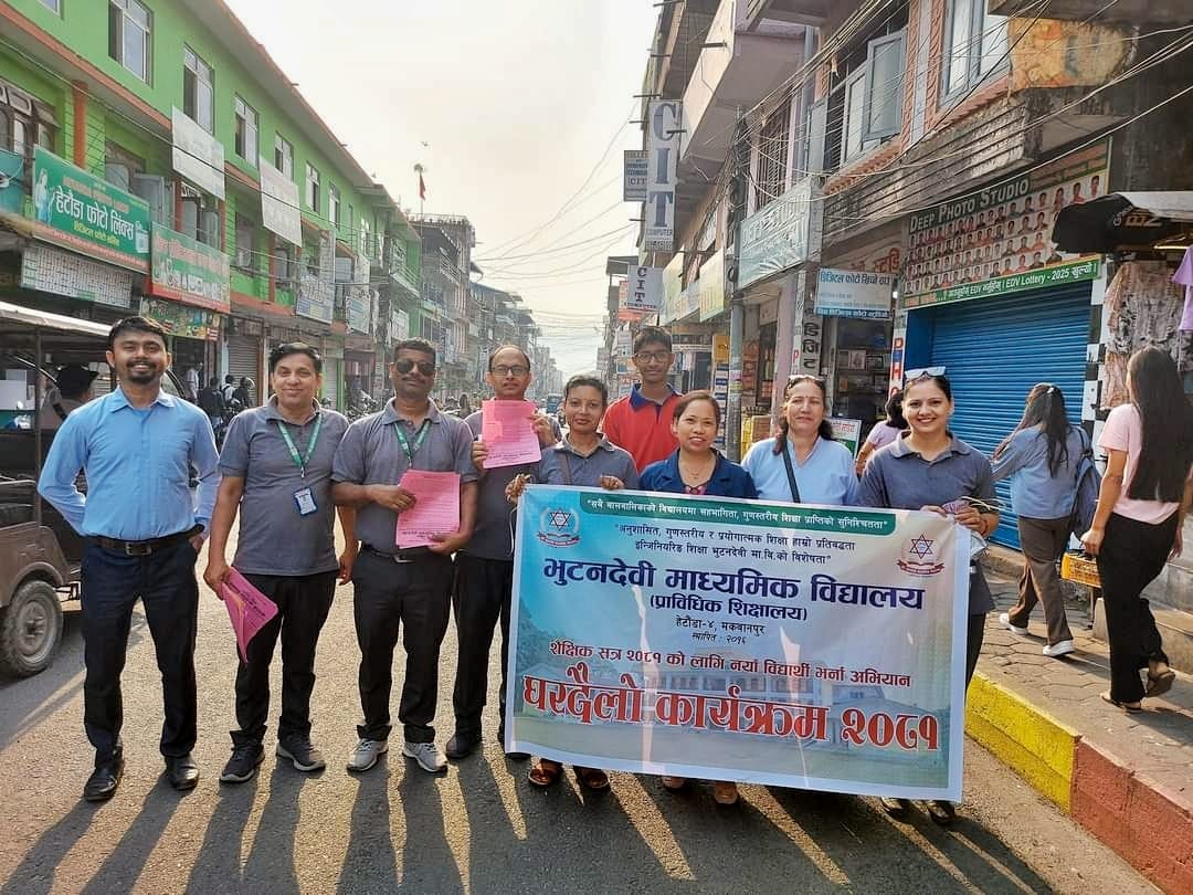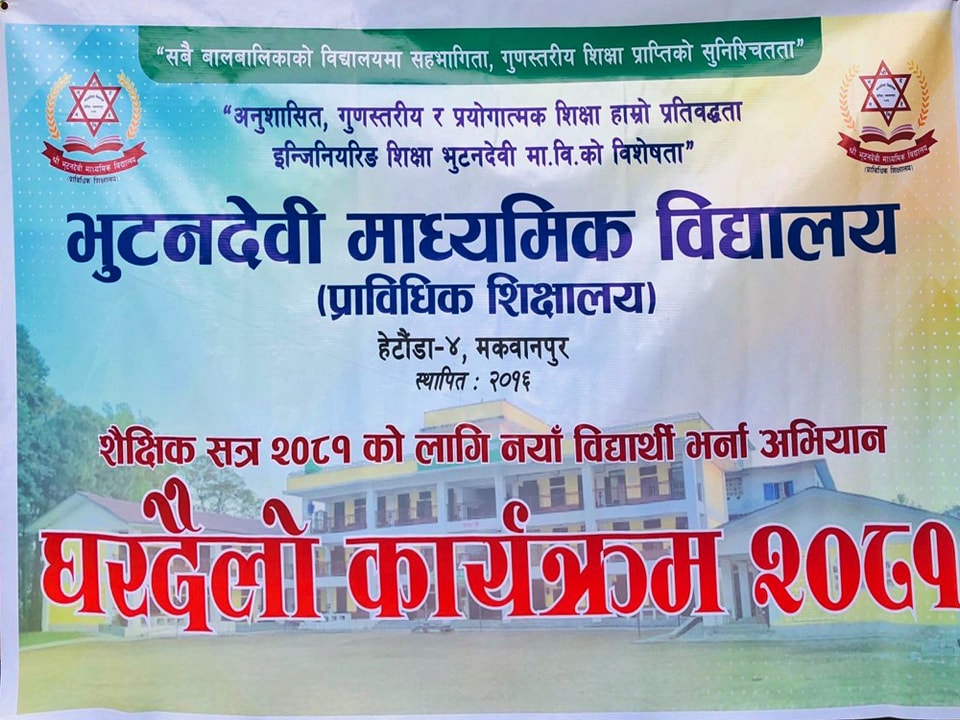 नयाँ विद्यार्थी भर्ना अभियान घरदैलो कार्यक्रम २०८१ का केही झलकहरु FacebookTwitterPinterestWhatsApp RELATED ARTICLESMORE FROM AUTHOR २४ महिने प्रि-डिप्लोमा औद्योगिक प्रशिक्षार्थी तालीम (Pre – Diploma Dual VET Apprenticeship) EARLY CHILDHOOD DEVELOPMENT FACILITATION को लागि भर्ना खुल्यो शैक्षिक सत्र २०८१ सालको प्रि-डिप्लोमा तह औद्योगिक प्रशिक्षार्थी तालीम (अप्रेन्टिशीप) विल्डिङ कन्सट्रक्सन (Building Construction) र इसिडिएफ (ECDF) मा भर्ना सम्बन्धी सूचना । शै. स. २०८१ सालको पुन: प्रवेश परीक्षाको नतिजा प्रकाशित । नविन सिग्देल, अध्यक्ष, विद्यालय व्यवस्थापन समिति admin - August 4, 2020 माधवप्रसाद दहाल, प्राचार्य, भुटनदेवी माध्यमिक विद्यालय admin - June 4, 2020 योग्य तथा अनुभवि शिक्षकशिक्षिकाहरुद्धारा अध्यापन । admin - June 1, 2020 नियमित आवधिक परिक्षा सञ्चालन तालिका । admin - June 1, 2020 खेलकुद र अन्य सहक्रियाकलापको व्यवस्था । admin - June 1, 2020 कडा शैक्षिक गुणस्तर अनुशासन कायम । admin - June 1, 2020