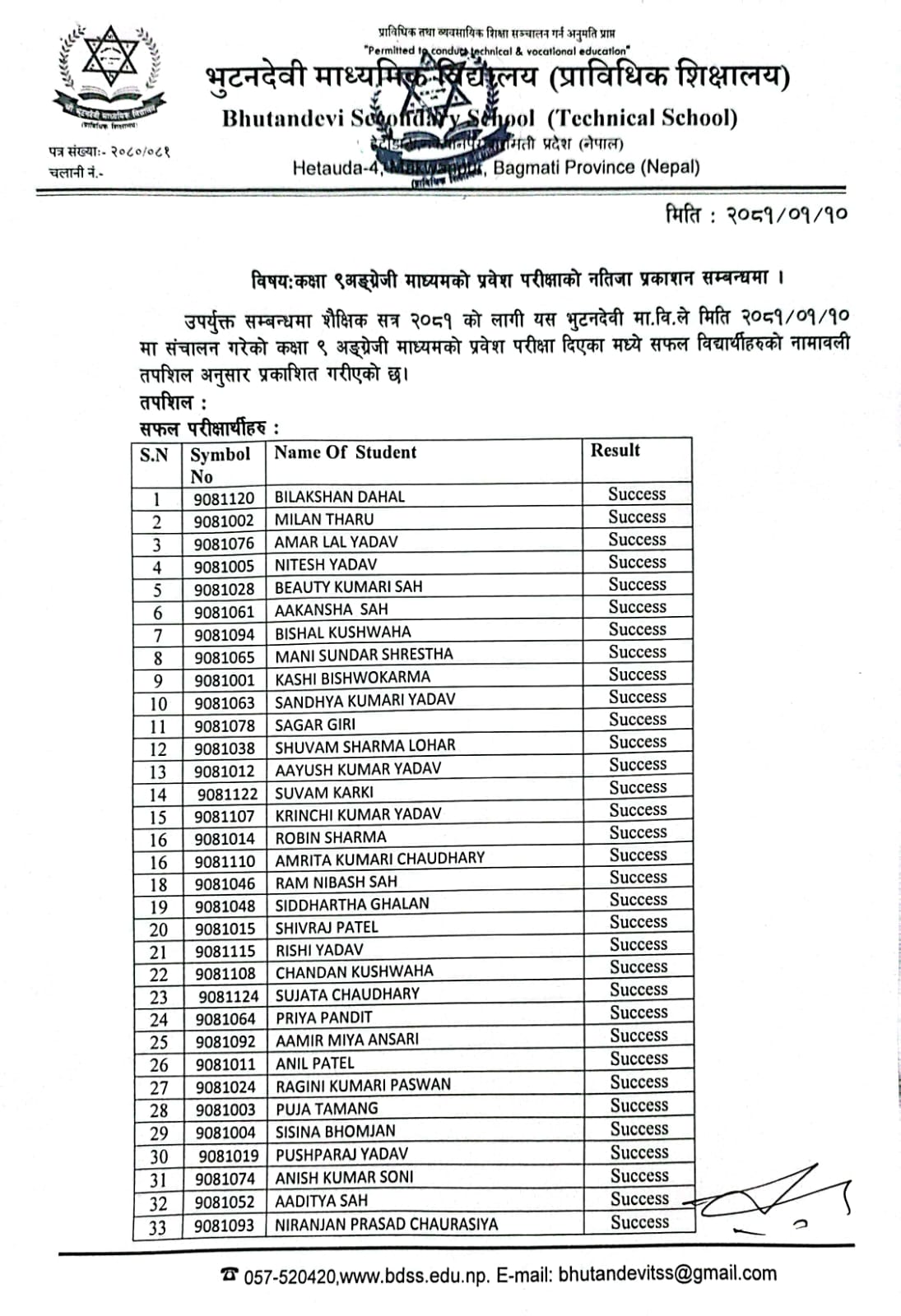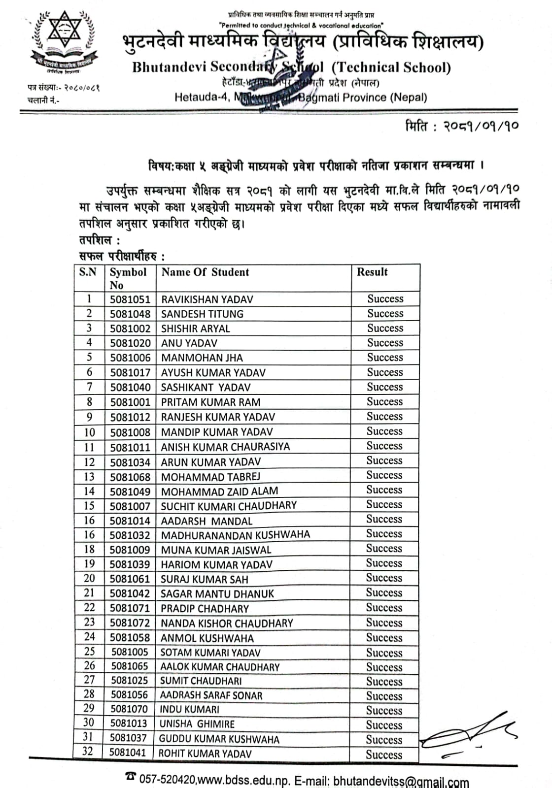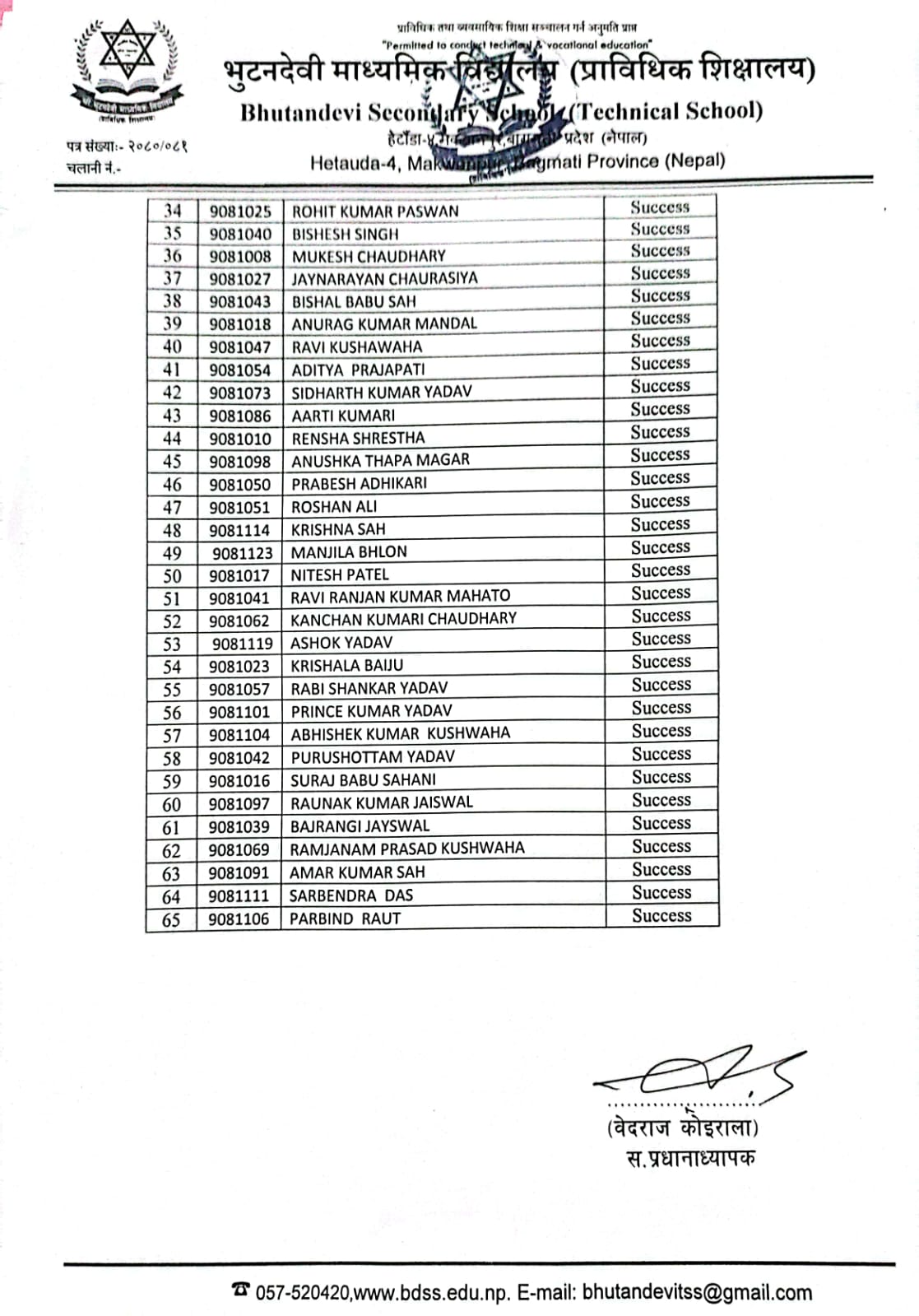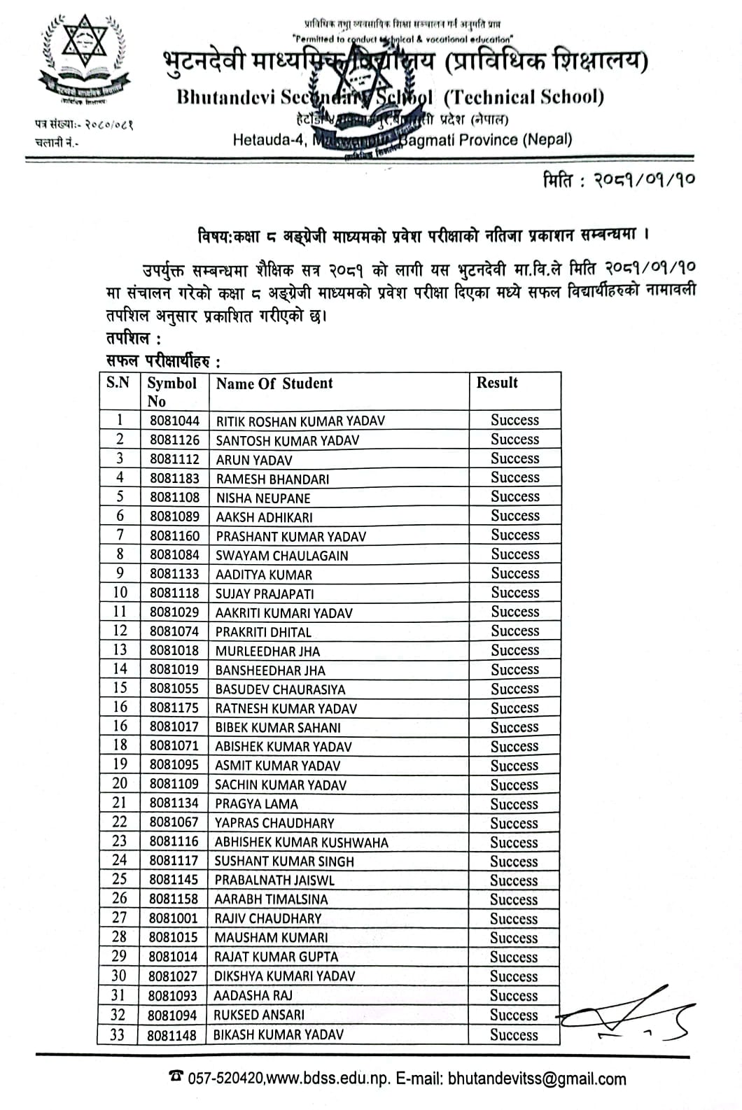 शै. स. २०८१ सालको प्रवेश परीक्षाको नतिजा प्रकाशित । FacebookTwitterPinterestWhatsApp कक्षा ५ (अंग्रेजी माध्यम) कक्षा ६ (नेपाली माध्यम) कक्षा ६ (अंग्रेजी माध्यम) कक्षा ७ (नेपाली माध्यम) कक्षा ७ (अंग्रेजी माध्यम) कक्षा ८ (नेपाली माध्यम) कक्षा ८ (अंग्रेजी माध्यम) कक्षा ९ (नेपाली माध्यम) कक्षा ९ (अंग्रेजी माध्यम) RELATED ARTICLESMORE FROM AUTHOR २४ महिने प्रि-डिप्लोमा औद्योगिक प्रशिक्षार्थी तालीम (Pre – Diploma Dual VET Apprenticeship) EARLY CHILDHOOD DEVELOPMENT FACILITATION को लागि भर्ना खुल्यो सूची दर्ता गर्ने सम्बन्धी सूचना। SEE नतिजा २०८१ नविन सिग्देल, अध्यक्ष, विद्यालय व्यवस्थापन समिति admin - August 4, 2020 माधवप्रसाद दहाल, प्राचार्य, भुटनदेवी माध्यमिक विद्यालय admin - June 4, 2020 योग्य तथा अनुभवि शिक्षकशिक्षिकाहरुद्धारा अध्यापन । admin - June 1, 2020 नियमित आवधिक परिक्षा सञ्चालन तालिका । admin - June 1, 2020 खेलकुद र अन्य सहक्रियाकलापको व्यवस्था । admin - June 1, 2020 कडा शैक्षिक गुणस्तर अनुशासन कायम । admin - June 1, 2020