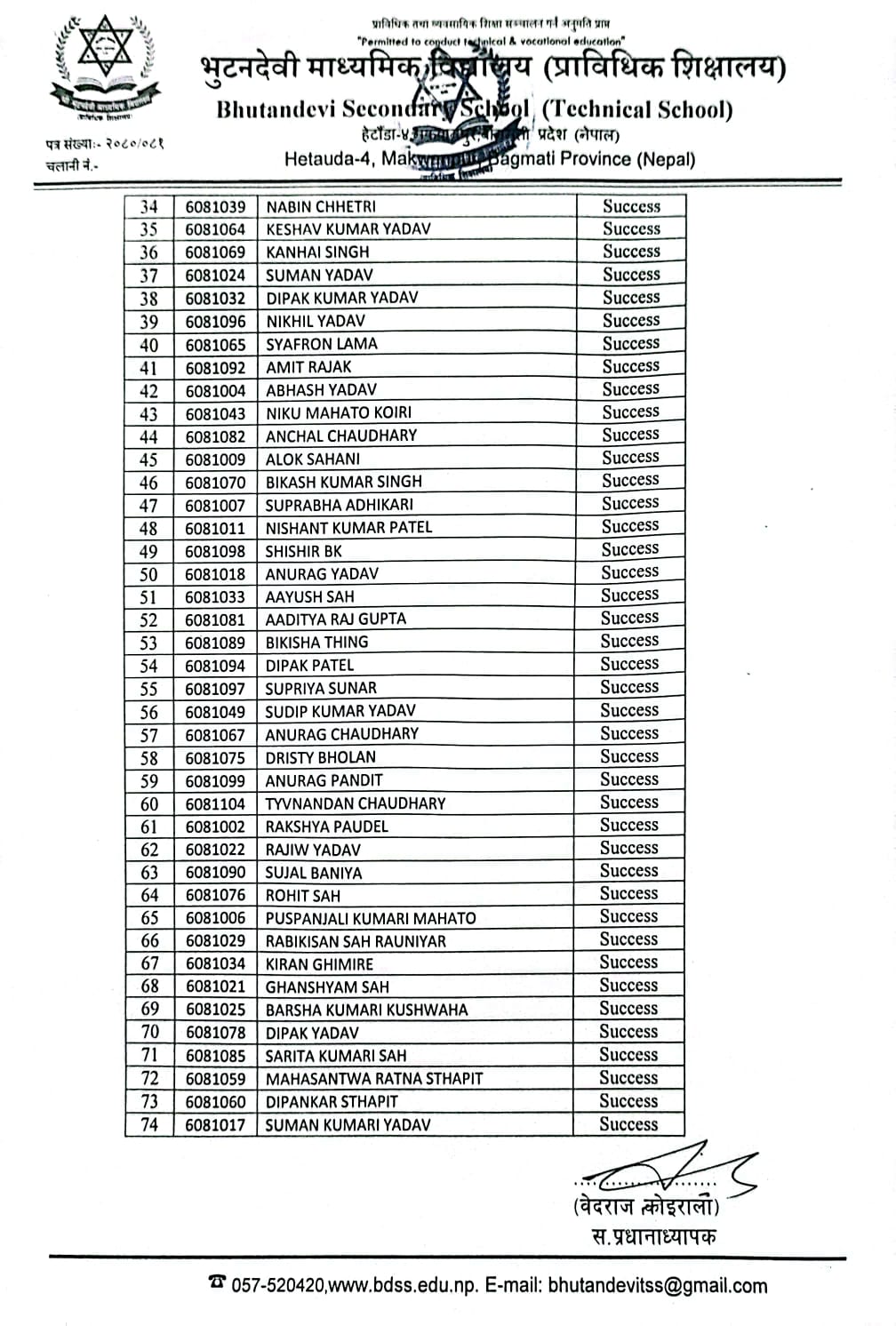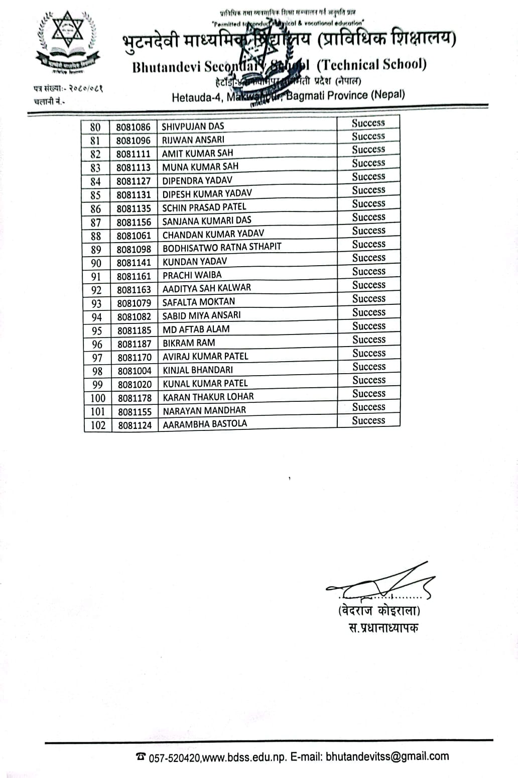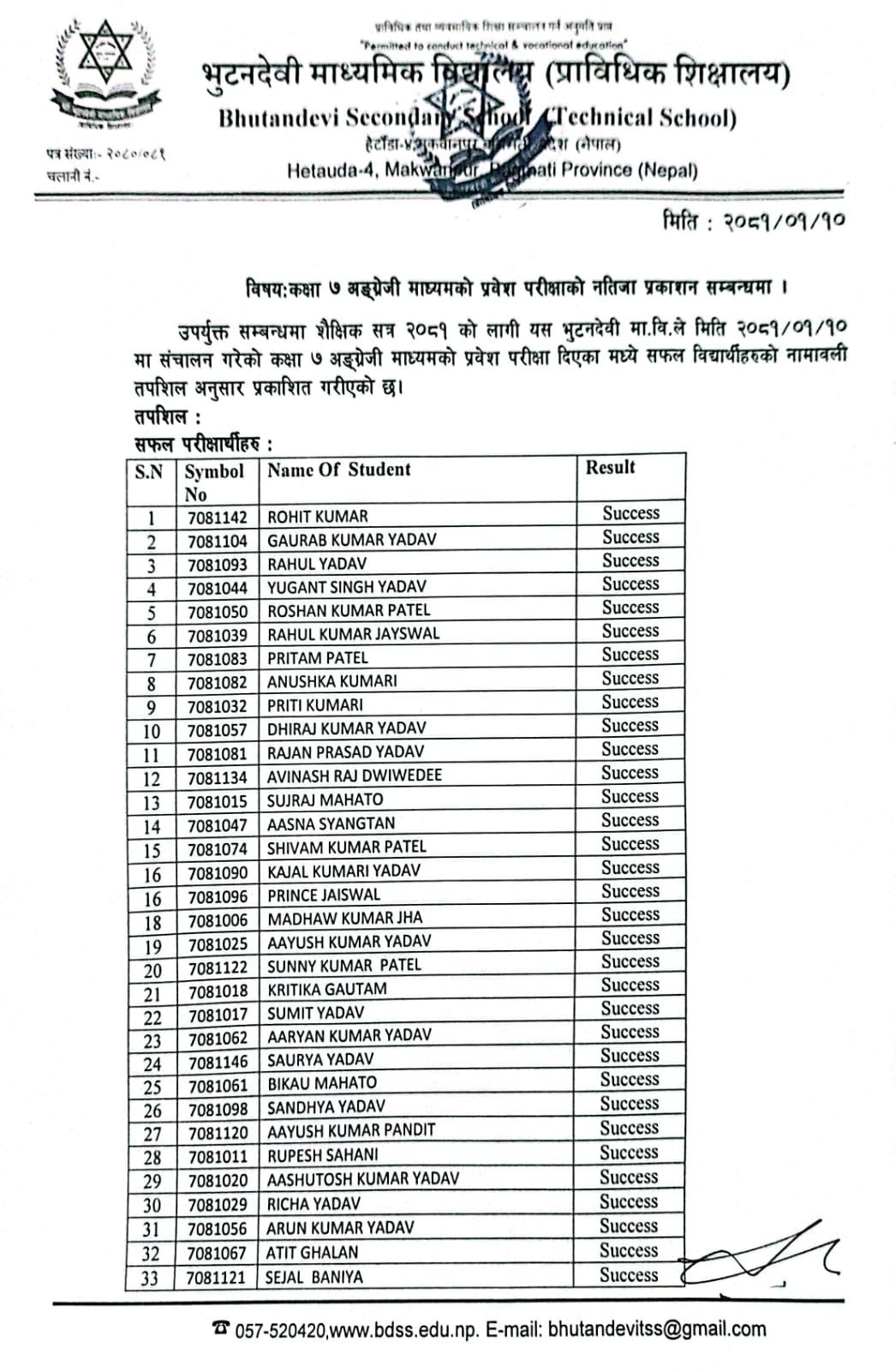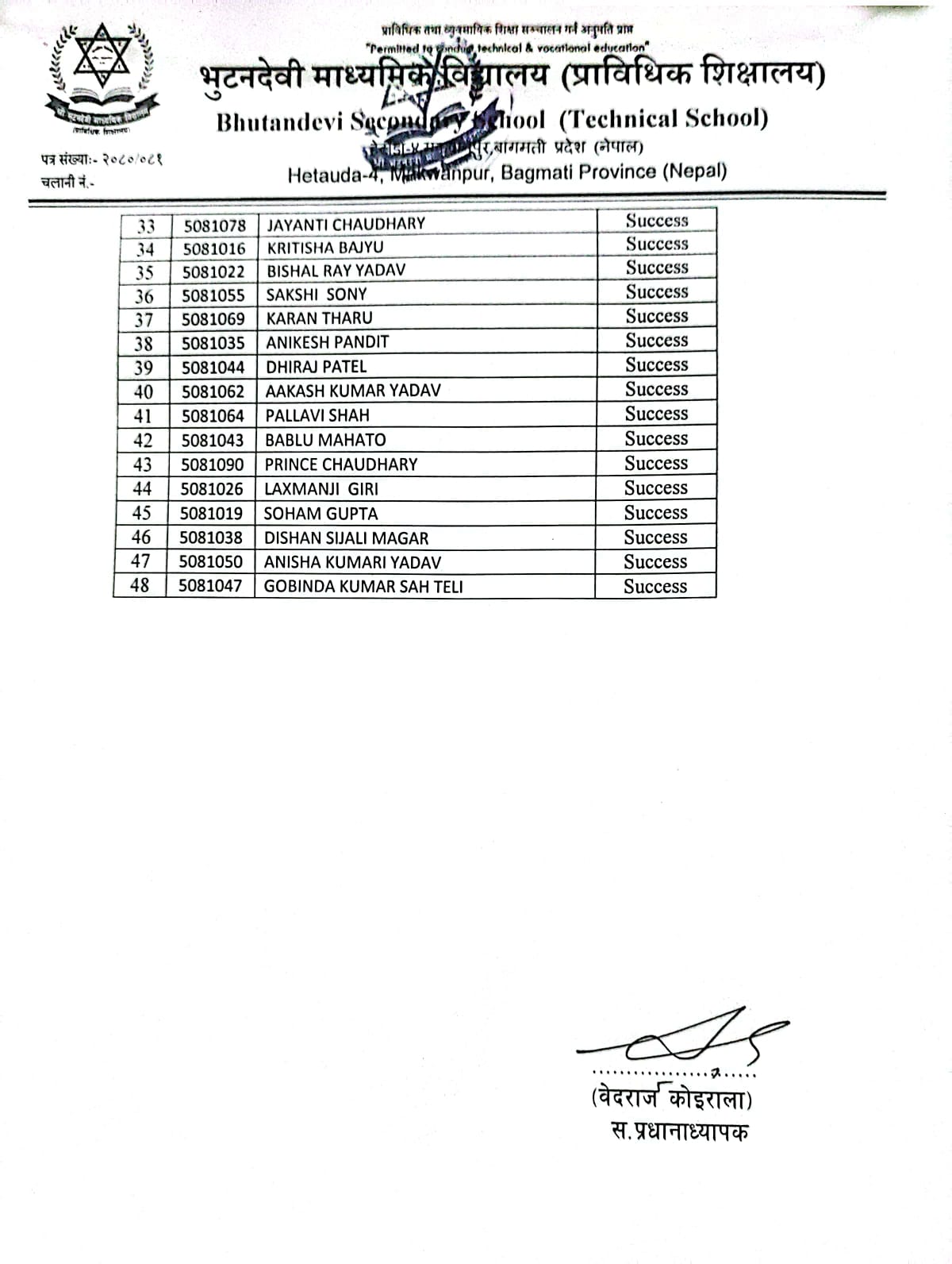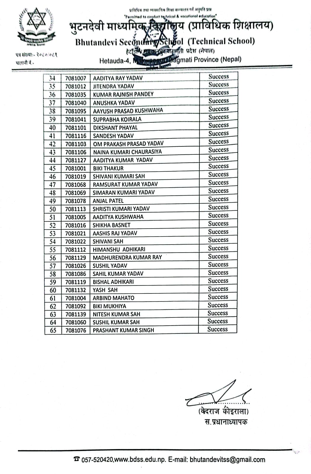 शै. स. २०८१ सालको प्रवेश परीक्षाको नतिजा प्रकाशित । FacebookTwitterPinterestWhatsApp कक्षा ५ (अंग्रेजी माध्यम) कक्षा ६ (नेपाली माध्यम) कक्षा ६ (अंग्रेजी माध्यम) कक्षा ७ (नेपाली माध्यम) कक्षा ७ (अंग्रेजी माध्यम) कक्षा ८ (नेपाली माध्यम) कक्षा ८ (अंग्रेजी माध्यम) कक्षा ९ (नेपाली माध्यम) कक्षा ९ (अंग्रेजी माध्यम) RELATED ARTICLESMORE FROM AUTHOR २४ महिने प्रि-डिप्लोमा औद्योगिक प्रशिक्षार्थी तालीम (Pre – Diploma Dual VET Apprenticeship) EARLY CHILDHOOD DEVELOPMENT FACILITATION को लागि भर्ना खुल्यो सूची दर्ता गर्ने सम्बन्धी सूचना। SEE नतिजा २०८१ नविन सिग्देल, अध्यक्ष, विद्यालय व्यवस्थापन समिति admin - August 4, 2020 माधवप्रसाद दहाल, प्राचार्य, भुटनदेवी माध्यमिक विद्यालय admin - June 4, 2020 योग्य तथा अनुभवि शिक्षकशिक्षिकाहरुद्धारा अध्यापन । admin - June 1, 2020 नियमित आवधिक परिक्षा सञ्चालन तालिका । admin - June 1, 2020 खेलकुद र अन्य सहक्रियाकलापको व्यवस्था । admin - June 1, 2020 कडा शैक्षिक गुणस्तर अनुशासन कायम । admin - June 1, 2020