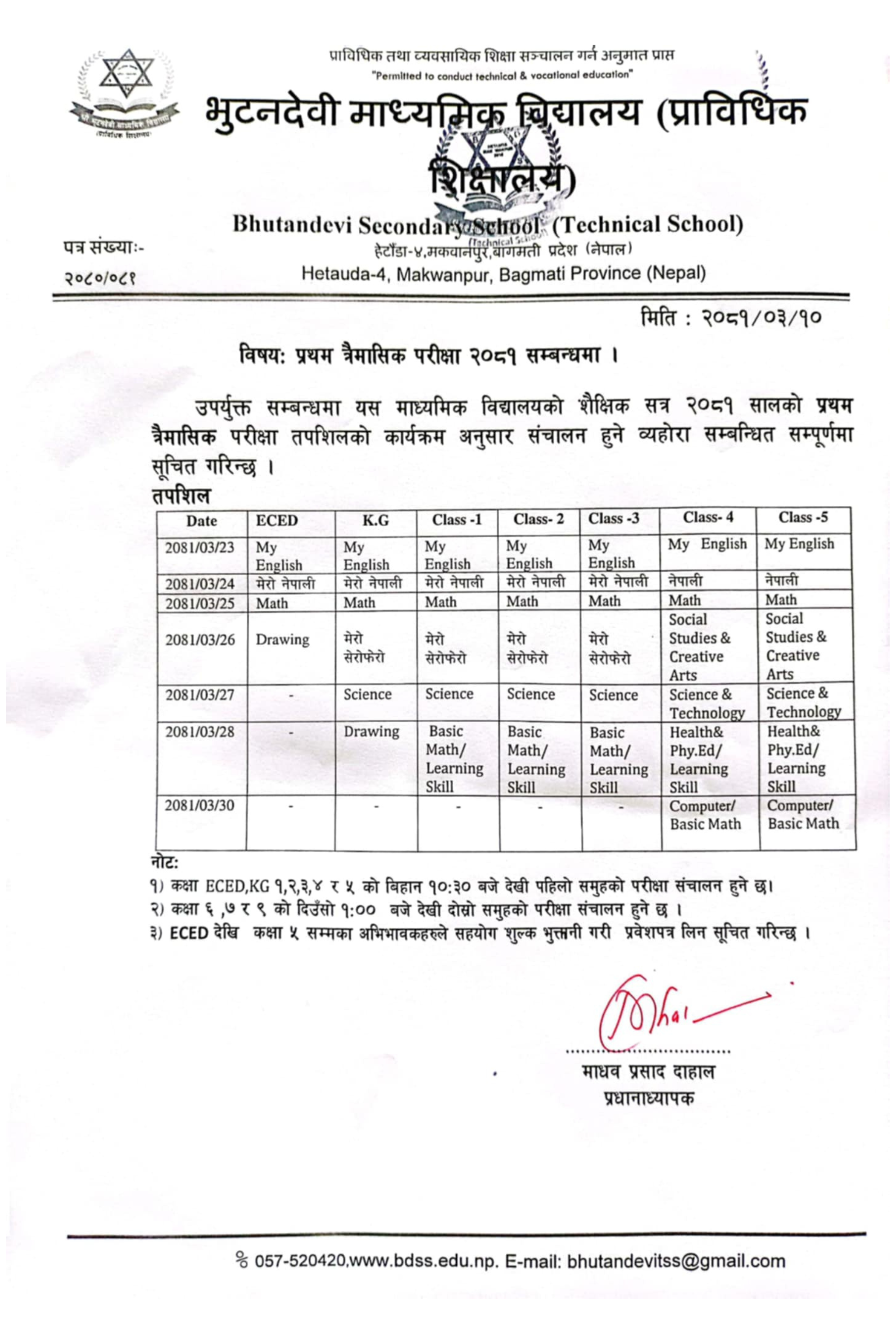 प्रथम त्रैमासिक परीक्षा २०८१ सम्बन्धमा FacebookTwitterPinterestWhatsApp RELATED ARTICLESMORE FROM AUTHOR सूची दर्ता गर्ने सम्बन्धी सूचना। SEE नतिजा २०८१ सूचिकृत हुन आउने सम्बन्धी सूचना नविन सिग्देल, अध्यक्ष, विद्यालय व्यवस्थापन समिति admin - August 4, 2020 माधवप्रसाद दहाल, प्राचार्य, भुटनदेवी माध्यमिक विद्यालय admin - June 4, 2020 योग्य तथा अनुभवि शिक्षकशिक्षिकाहरुद्धारा अध्यापन । admin - June 1, 2020 नियमित आवधिक परिक्षा सञ्चालन तालिका । admin - June 1, 2020 खेलकुद र अन्य सहक्रियाकलापको व्यवस्था । admin - June 1, 2020 कडा शैक्षिक गुणस्तर अनुशासन कायम । admin - June 1, 2020
